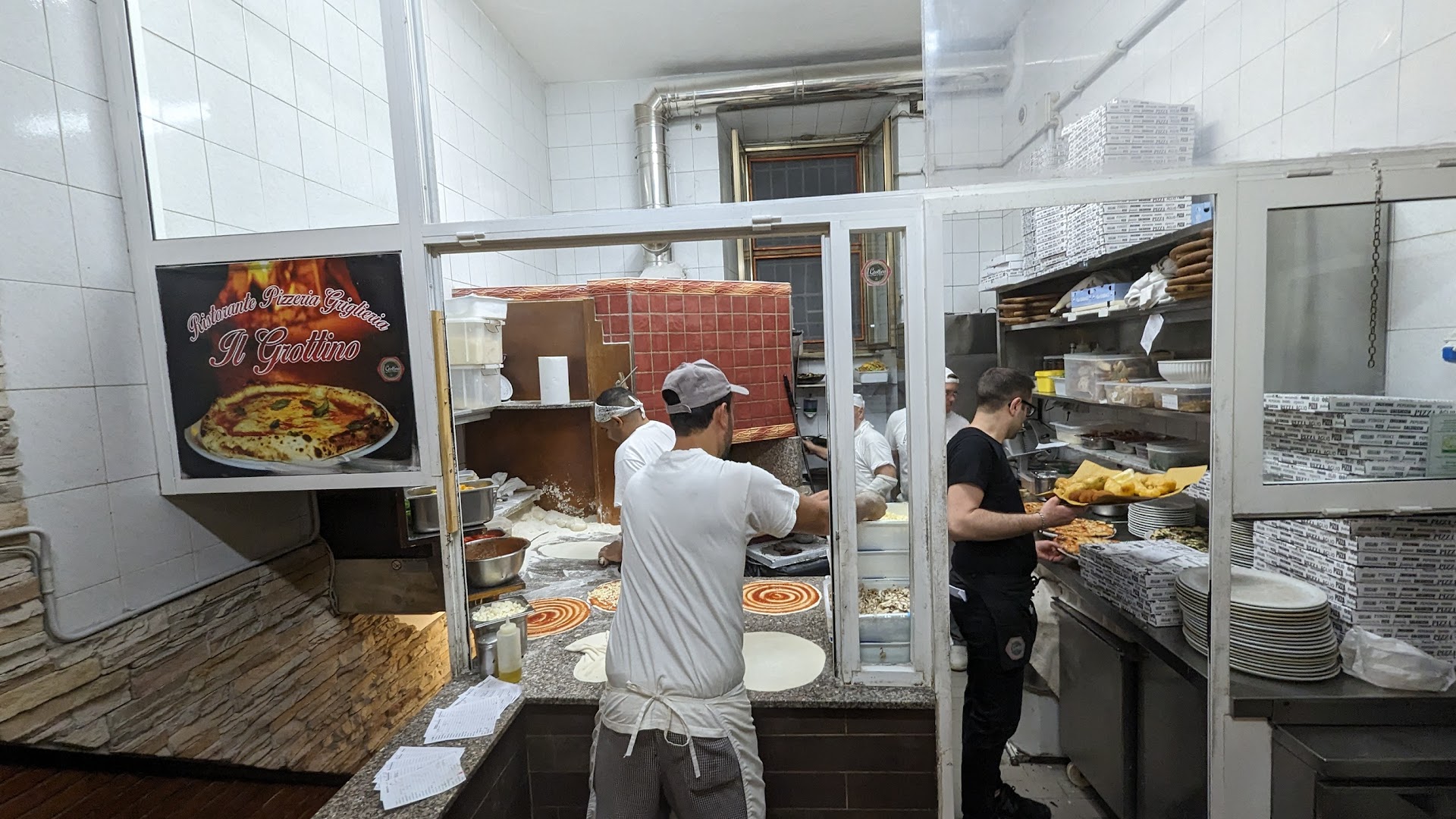 Read moreIl Grottino is a solid choice in Testaccio's pizza scene - it lives up to the hype, and the down-the-street queue of local and international customers. Line up next to the door and make yourself known to the waiter. There is no list, they'll assign you a table when one becomes available for your party size. Busiest time is around 9pm, so go early or be prepared to wait. Food is traditional Roman pizza, thin, crispy, and slightly charred. They offer full range of fritti, bruschetta, primi (pastas), secondi (meats), and dolci (desserts), with a wine list and beer on tap. Note fritti with * are frozen, not fresh but still ok. Had the fiori di zucca and supplì, both were great. Pizzas were the star, we had salsiccia e funghi (sausage and mushroom), and the house Grottino pizza with sausage, arugula, and a soft egg on top. Both were fantastic but probably could do with a bit more seasoning (salt pepper and peperoncini). Service was great, fast and unfussy, but with pizzas priced at 8-10 €, they need to turn the tables over fast too. We had a great...