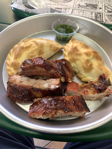 Definitely should try their chicken and ribs ! There are the normal and spicy chicken (not too spicy just extra spices on top of the chicken) I've tried both and both are delicious and most important thing, very affordable. the chicken is very big, juicy and tender. you should also try their empanadas 😊 There are several fillings, including vegetables. Totally recommend this little gem!