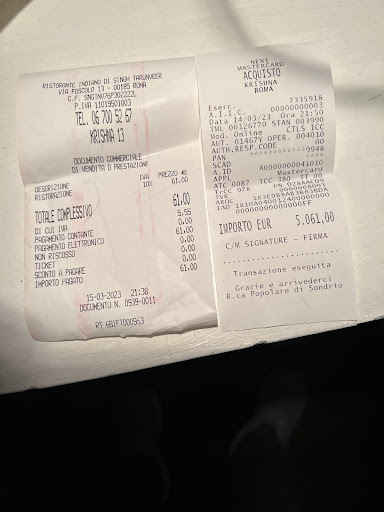 1)The restaurant seems to be showing discriminatory behaviour towards Indian people 2) The service was really bad , no basic ettiequettes . 3) The basic services and protocols were not followed . 4) The way the waiter was taking the order was itself very reluctant and had no intent of dedicating time to us 5) The candle kept on the table was not lit on our table while it was done for all other non Indian people sitting around . 6) Service was pathetic with no complimentary papdam ,pickle or onions with chilli which is very basic in every Indian restaurant in Italy , have already tried atleast 10 other restaurants like crown indian ,spice indians , royal indian group and Gandhi 2 india etc .in Venice Florence Tuscany and many other places Haven't found anyone behaving disgustingly discriminatory. 11) The statue of lord Krishna was kept just below the bottles of alcohols which is so offensive for any Indian ,disrespecting our deity in every possible way. 12) In the end there was no saunf provided also one of the fundamental cultural modus operandi and upon asking the waiter was arguing a lot was not at all apologetic about anything .while he was dedicating time to all other customers he was paying iota of time serving us at our table, was terribly slow and intentional in his behaviour towards us in doing so 13) His statement was that we should have asked about complimentary things , was stupidly non sense as none of the Indian restaurant ever behaved .like this . 14) Not even a glass of water was offered without asking while it was done for other customers 15) We were provided with forks and knife to eat traditional Indian food and chapatti, no spoons nothing .who does that ? Expect us to eat with the forks and knife ?? 16) Extra plates were provided in the beginning,we did no lt used the plates ,and he removed the plates in the middle of our meal without even asking , showing utmost disrespect and non chalant attitude towards us , no courtesy to even ask for the same . 17) Such restaurants are a black spot in the name of India where atithi devo bhav is culture since time immemorial. 18) No body should ever go to have meal at such discriminatory place and such restaurants should be banned for this kind...