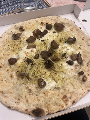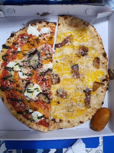 Read moreUna rivelazione. Posto già conosciuto da mia moglie per le consegne a domicilio, ma stasera lo abbiamo provato sul posto. Non si presenta come una pizzeria normale, ma come un vero e proprio laboratorio artigianale. Non ci si deve aspettare tavoli apparecchiati, non è questa la loro attività principale, la loro attività è l'asporto, ma se si decide di consumare sul posto i loro prodotti hanno sette tavoli fuori il locale adibiti alla necessità. Sono estremamente gentili, ma soprattutto attenti al cliente, il nostro ordine era insieme ad altri cento ordine, ma hanno avuto l'accortezza di farci arrivare le pizze dopo aver mangiato i fritti. Chapeau. Supplì e crocchette di patate di un altro pianeta. Panatura spessa e consistentecon un ripieno generoso e gustoso(le crocchette con all'interno pezzi di patate!!!!!!), la panatura la fanno loro. Pizze ottime, sottile al centro con la giusta pasta nel cornicione, ben cotte sotto e non molli al centro, se piace la pizza romana non hanno rivali. Non posso dare più stelle, ma questi ragazzi sanno veramente cosa fare con un po' di farina ed acqua. Bravi...