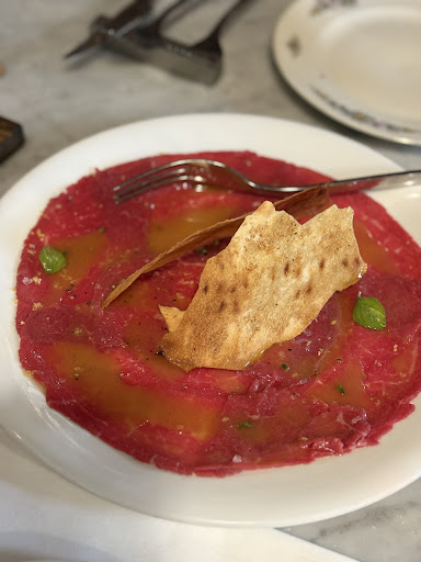 Read moreThis is the best restaurant in Rome; I came back here three times a week. The sirloin steak with butter is simply divinely tender and melts in the mouth, the steak with truffle sauce is the perfect combination of flavors. Uruguayan steak with pumpkin sauce is luxurious and tender. Carpaccio with pumpkin sauce is an excellent starter, an interesting combination. Spaghetti in a pecorino wheel - creamy, filling, a bit too salty, but excellent with wine. Cacio e pepe pasta is simply divinely delicious. Pasta with truffles - luxurious, plenty of truffles. A few questions about the steak with artichokes - it's not bad, but I got a sinewy piece, it was not easy to chew) all the wine we tried was fabulous: white Timorasso from Piedmont, red Nerello from Etna, reds by the glass - I recommend them all. And the dessert - tiramisu - it's not just a dessert, it's a performance! And I must say separately about the staff: fabulous people, very compassionate, helpful,...