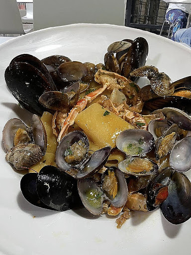 We stopped in this place since it was rated highly and right down the street from our hotel...we were not disappointed! It is very local and not "touristy" and if ambiance is what you're looking for, go somewhere else but it did have it's own "rustic" charm. The waiter greeted us warmly and we sat ourselves. Hubby got pasta de mare and I ordered spaghetti cacio e pepe, we order wine (only comes bottle sized and white only, no problem!) and a bottle of water. I could not finish my pasta so hubby polished it off. The whole meal came to 24.50 with service included on the bill. We will go back...