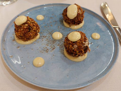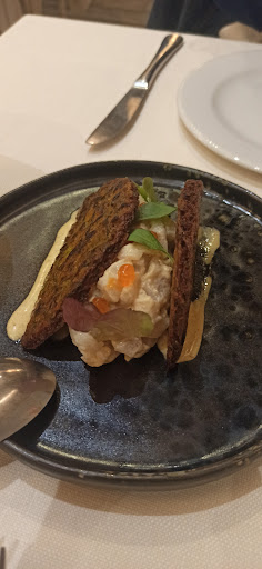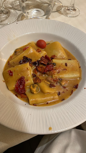 Read moreAmbiente accogliente dentro, da fuori non si anticipa troppo cosa si troverà dentro. Servizio attento e cortese, piatti di livello (ottime le tagliatelle con zucca e porcini fatte da loro, così come la tagliata sempre coi porcini). Prezzi tra il medio e il medio-elevato, ma comunque pienamente giustificati dalla ottima qualità del cibo e dal servizio molto buono. EDIT Tornato una seconda volta, lo spaghettone Mancini all'estratto di cicala di mare, zucchine romanesche e katsuobushi è stata una vera delusione...cottura della pasta ok, ma era un mappazzone con gli spaghetti affogati in questo estratto di crostacei molto untuoso e poco saporito, le zucchine rese liquide che peggioravano la situazione senza dare anche qui sapore e l'unica nota intonata del katsuobushi. Con il secondo di pesce abbiamo migliorato di poco, ma la ricciola era troppo avanti di cottura, un po' troppo salata, di contro la caponata era decente. Ho notato prezzi folli sbilanciati verso l'alto e porzioni ridottissime (29 euro la ricciola e avremo parlato di neanche 100 grammi di pesce...). Ricarichi sui vini eccessivi, provata bottiglia di Roero Arneis a 25 euro. Levo 2 stelle alla...