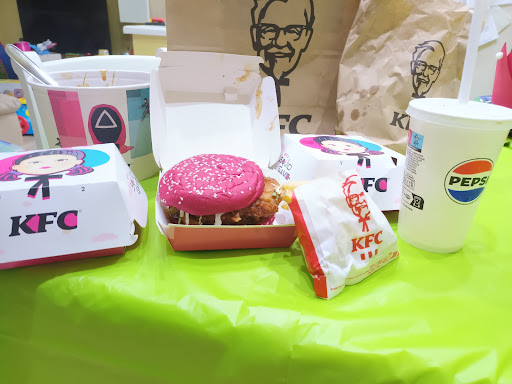 Ho potuto acquistare il menù in edizione limitata SQUID GAME comprendente: 2 x double bourger 1 x burger 1 x bucket di crocchette di pollo in salsa agrodolce con contorno di patatine fritte 1 x pepsi 1 x 7up