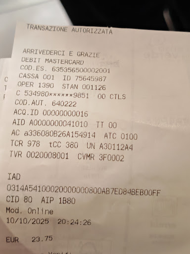 Read morePessimo Organizzazione inesistente. Ordine effettuato alle 20:24, ma alle 21:26 non era ancora pronto. Non riescono a far uscire gli ordini in ordine numerico, quindi se siete in gruppo, può capitare che alcuni mangino subito e altri dopo un’ora.