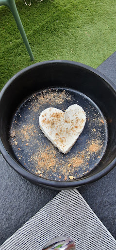 Read moreIo, mia moglie e il nostro barboncino abbiamo cenato qui sabato 11/11. La zona è strategica, in piena movida zona Ponte Milvio. Il posto è curatissimo, nei minimi dettagli, ed arredato con gusto. Moderno ma caldo ed accogliente. Quasi tutti i tavoli hanno la loro cuccia morbidissima con plaid, ciotola e bottiglia d'acqua riservata. Il quasi tutti indica che il locale anche se studiato per il comfort dei nostri amici pelosetti è indicato anche per chi il cane non ce l'ha. La loro presenza passerebbe praticamente inosservata se non fosse motivo di socializzazione tra i tavoli. Non c'è un cane che va a spasso per i tavoli, anche se il personale non lo ostacolerebbe. Il nostro tavolo per quasi tutta la cena era l'unico occupato in veranda (chiusa e riscaldata), ma i camerieri non si sono mai dimenticati di noi. Non ho mai dovuto riempire il mio bicchiere da solo... L'attenzio verso i cani poi è quasi maniacale, con i camerieri che hanno tutti la loror scorta di biscottini in tasca e che coccolano continuamente i pelosetti, oltre ad un addestratore che gira per i tavoli pronto a dare assistenza per qualsiasi necessità. Il nostro piccoletto veniva da una enterocolite quindi abbiamo preferito non rischiare con cibi non casalinghi ma le bowl che preparavano per gli altri amichetti erano molto invitanti. La ristorazione umana è di ottimo livello, originale e ben presentata. Abbiamo preso come antipasti una tartare di gambero di Mazara (delicatissima) e delle fettuccine di calamari con sughetto di moscardini (fantastiche). Due primi, dei ravioli con baccalà alla romana (ottimi) e una parmigiana in tortellino (molto buoni ma un livello sotto i ravioli). Per dolce un riso al latte con caramello saltato e uvetta (delicatissimo ma molto gustoso). Il tutto annaffiato da dell'ottimo prosecco ghiacciato del quale non ricordo il nome perchè praticamente non abbiamo mai tirato fuori la bottiglia dal cestello in autonomia per quanto era presente il cameriere. Abbiamo pagato in tutto 110 euro, pressi in linea con la zona e soprattutto con il livello del locale e del servizio. Lo consiglierò a tutti i miei amici per una serata intima, ma anche per un dopocena vista la ampia gamma di drink a disposizione. Location perfetta sia per chi ha un cane ma anche per chi preferisce lo scondinzolio di un pelosetto ai capricci di un bambino viziato. Unico consiglio che mi sento di dare è una insegna un po' più evidente dalla strada, ma senza esagerare per rispettare la linea...