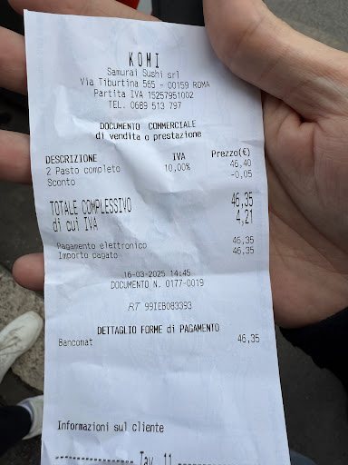 I had lunch at Komi Ramen, and it was a very positive experience. I tried the ramen, which was quite good—not top-tier Japanese cuisine, but definitely satisfying for the price.
