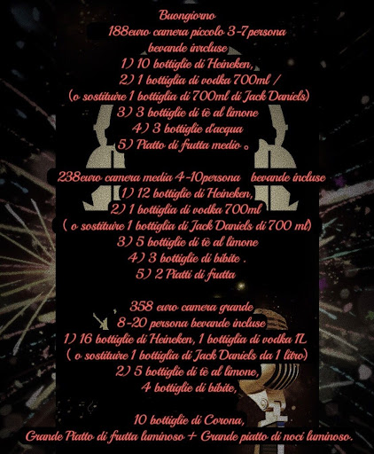 Read moreLi contatto per prenotare per 7. Capisco la caparra, capisco il costo che è come noleggiare una sala per compleanni, capisco tutto. Ma le bottiglie di vino che alla cantina costano 30€ e li ne costano 88€ un po' eccessivo. Ho chiesto spiegazioni considerato che 58€ di sovraprezzo sono eccessivi e mi è stato risposto "eh noi facciamo così, il prezzo lo fa il capo". Ho chiesto un prosecco e la proposta più economica di nuovo è da 88€ ed è champagne. Tra l'altro non conoscono la differenza tra champagne e prosecco e spumante, ah e non hanno vino bianco ma se lo avessero sappiamo gia che costerebbe 88€, no? Inoltre dal primo momento che ho chiesto informazioni mi è arrivato tipo 4 volte questo messaggio prefatto in cui mi si chiedevano i soldi della caparra prima ancora di rispondere alle mie domande (giusto per capire come funzionava una serata da loro). Bene così, non ho nessuna intenzione di dare i soldi miei e di miei amici a gente sgarbata e ladra. A vedere le altre recensioni a quanto pare l'abbiamo scampata bella. P.S. 3€ per le noccioline giusto sul lungomare ad agosto. P.P.S. evidentemente manco leggono le recensioni e rispondono con una risposta registrata o forse non capiscono...
