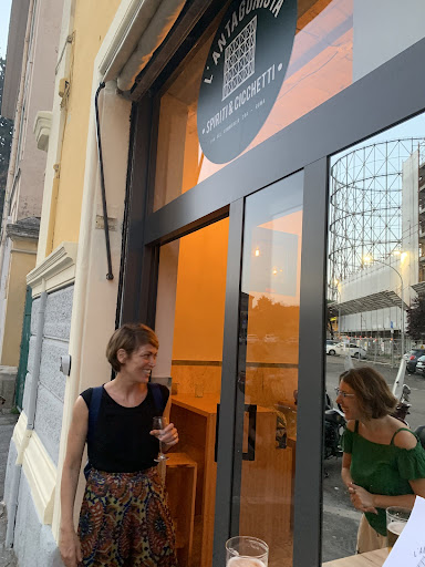 Nella schizofrenica ricerca del nuovo, del confort, dell'esclusivo, del qui deve essere diverso, l'Antagonista è un diversivo che mi ha spiazzato. Sembrava di stare su un set di un film di Paolo Genovese. In effetti resterebbe un perfetto sconosciuto, visto dove si è andato a infilare, se qualche amico non te ne parlasse. Ma ti può capitare metti un sabato sera a Roma, di camminare perché vuoi respirare l'aria ostiense di inizio estate, a metà luglio, quando ancora non ti sei accorto che le giornate si stanno già accorciando, e sembra che hai tutta una vita davanti: così mi ha conservato questa poesia con le luci del tramonto sul gazometro, su una strada che a fine giornata si disertifica dal traffico, alle ore 20, con un centinaio di posti auto in strisce bianche totalmente svuotati. Grazie a un menù originale e un personale amichevole. Abbiamo preso i panini al pastrami. Sarò molto difficile trovarne simili all'interno del GRA, e chissà all'infuori. Possiamo dire che un aperitivo è un aperitivo, se non te ne intendi in fondo un gin vale l'altro. Ma la qualità di quel panino e di certi "semplici" cicchetti, rubano a sorpresa la scena a molti dei protagonisti che si trovano in giro per la città eterna, che molto se la tirano e molto ti sfilano dal portafoglio, a tradimento. Complimenti alla cucina e a questi...