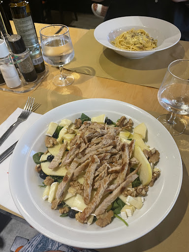 Read moreSituato in via S.Francesco Acri nel quartiere di Montagnola, il locale fa parte di una catena. Qui a Roma ho avuto la possibilità di provare altri Insalata Ricca, sicuramente questo è tra i più curati e meglio gestiti, essendo in una zona poco turistica è frequentato da romani. Il ristorante-pizzeria è dotato di ampi spazi, arredamento moderno con illuminazione ricercata. Ciò che vi colpirà prima ancora di sedervi è la cucina semi aperta con l'esposizione dei tagli di carne e pesce. Si, perché a Insalata Ricca oltre alle buonissime insalate di carne, pesce e vegetariane (di proporzioni generose) potrete gustare anche antipasti, primi, secondi di carne o pesce e pizze. Il menù propone sia piatti tipici romani come i fritti, carbonara, amatriciana che cucina laziale e mediterranea. La pizza è quella tipica romana, dal cornicione basso e la pasta sottile. Personalmente ho provato tutto e devo dire che la qualità è buona, la carne e il pesce sono freschi, così come le verdure e le insalate. Per quanto riguarda i prezzi questi variano molto a seconda di ciò che prendete, i primi piatti vanno dai 8 ai 13 euro, i secondi di carne e pesce dai 14€in su e le insalate dai 9€. Vi consiglio di concludere la cena con un buon dolce, il tiramisù merita sicuramente il peccato di gola. Se avete problemi di intolleranze fatelo presente, non hanno un menù a parte ma potrete comunque trovare valide alternative a farinacei, latticini ecc... Vino della casa profumato, ideale da abbinare a piatti di carne per i rossi e pesce per i bianchi. Il servizio è rapido, l'uscita dei piatti abbastanza sincronizzata, il locale è pulito e ben curato. Consiglio di prenotare sopratutto se andate nel fine settimana, lo spazio è ampio ma il locale è sempre molto apprezzato. Personalmente ci vado spesso, soprattutto per cene di gruppo perché il vasto menù accontenta i gusti e le esigenze di tutti, da chi vuole un pasto fit a più...
