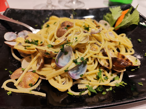 Read moreHo assaggiato tutte le portate tranne il tiramisù poiché detesto il caffè. Il servizio un po' così così, hanno portato a me le due ostriche e al mio compagno le scaloppine con cicoria ripassata prima delle altre portate, quando ve lo mettete in testa, cari ristoratori, che deve uscire tutto insieme ? I camerieri parecchio imbranati, non sapevano dove andavano i piatti, erano confusi e molto impacciati e poco professionali. Il luogo è una specie di refettorio rumoroso, non si può parlare. Le capesante erano in sé insipide ma buona la panatura, la cicoria e le scaloppine ottime. Le fettuccine ai funghi porcini niente di eccezionale, darei appena la sufficienza, poi mettici che non è stagione per i porcini e che è un ristorante di cucina sarda, quindi poco ci azzeccavano ma va beh .... Il risotto alla crema di scampi dovrebbe essere bello dolce invece sapeva solo di sale, con uno scampetto microscopico sopra. La frittura gommosa e salata. I dolci buonissimi. Tornerei per provare la pizza, avevano un bellissimo aspetto e profumo e mi è parso di intravedere un forno a legna. Obiettivamente non ho ordinato piatti della cucina sarda, sarebbe da fare un tentativo. Non so come sono i prezzi perché non ho pagato io. Nel complesso sufficiente È un quartiere dove è difficilissimo parcheggiare come molti Quartieri a Roma ma è a due passi...