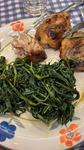 Read moreSuper affamati al termine di una disastrosa escursione estiva a Martignano, ci fermiamo quasi per forza alla prima osteria di strada, incoraggiati dalle recensioni. Da fuori non siamo molto convinti ma l'interno è onesto e accogliente; ci fanno accomodare con un sorriso (iniziamo bene). Il menu è esposto su una lavagnetta e c'è una buona scelta da osteria tra classici e piatti romani. Qualcuno aggiunge un primo, io mi concentro su un secondo di carne (una grigliata mista) e un doppio contorno di patate e verdure ripassate, innaffiati da acqua Claudia che è proprio dei dintorni. Piatti al tavolo puntuali, servizio riservato ma attento, piatti (parlo per quelli che ho assaggiato) equilibrati e saporiti, ciascuna carne con la perfetta cottura e patate al bacio. Una soddisfazione finalmente in una giornata dove tutto è andato storto per la disorganizzazione locale... ce ne fossero cento...