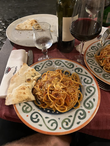 Read morenote added to the end I have two well behaved kids and they sat us in the back room by the bathrooms. We thought it would be fine but the hand dryer sounds like a rocket taking off and one kid is severely scared of loud noises so every time it went off he lost it and we had to walk out and take a break. This happened three times before the food came out. I asked if we could move to a front table (there were 5open tables plus the tables outside) and one server said yes. I moved and my husband brought the food to us from the back table. I was stressed with two kids on my lap (under 2) at a two person table - trying not to take up any room (with permission to be there). And the other owner(with glasses) and server told us we had to move back to our table or leave. I wasn’t going to traumatize my kid anymore so I told them we were leaving and they needed to pack up our food- which they did. Then they proceeded to make my husband pay in cash to avoid taxes in Italy (it’s a whole scam they are running and their card reader does work and they pretend like it doesn’t) and they kept £120 when it cost 90.