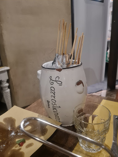 I came knowing nothing about arrosticini and with zero Italian speaking ability but left incredibly pleased and sad that I was just a tourist and wouldn't be able to come back any time soon. I had a really great experience with the waitstaff, my server was attentive and happy to explain what arrosticini was and how it was typically eaten, then suggested to me me what to order and at the end of the meal seemed genuinely invested in if I'd enjoyed it or not. Another server actually dropped the food off for me and said that if I didn't like the way something was cooked that I should let her know. As I was leaving, another server walked past just to say bye to me! It was a busy night but the staff was on point the entire time. Because I'd loaded up on gelato just an hour before I wasn't really hungry so my server suggested that I should just try at least one of each of the skewers then and order a bruschette. This was the perfect amount for me but if you're coming for a full meal, I definitely recommend you ordering at least double than that. Each arrosticini was super juicy, tender and delicious and I really enjoyed the homemade and truffle ones (truffle is so cheap here and so pricey in the US!!!!). I ordered the truffled spinach and cheese bruschette and was happy with it but not necessarily amazed.... all in all, super enjoyable experience and props due to the incredible waitstaff. I know it's hard to turn down pizza and pasta for one meal, but if you're in Rome, take a break from carb loading and check this...
