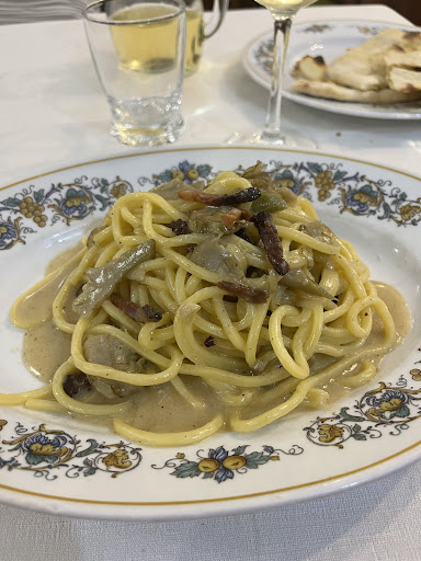 Food was good, ranging from A to B- . The filetto di baccalà fritto was decent but sub-par by Italian standards, with a strange atypical breading. The tonnarelli con guanciale, carciofi e pecorino (pasta with bacon, artichoke and cheese) was so delicious that despite not being a bread lover, I would have liked some bread for a scarpetta to finish off the wonderful sauce. Alas, they bring a crunchy focaccia to the table, which isn’t going to sop anything up unless submerged in a bowl of liquid. The coperto was only 1 euro though, so better than being charged 3 or 4 euro coperto for some bad bread I don’t want. The house wine was also not great, in fact I didn’t finish the quarter liter I ordered (and it’s against my religion to waste wine 😜). If you’re looking for authentic Italian food, made by Italians, served by Italians, at good prices, and you don’t care about atmosphere, this...