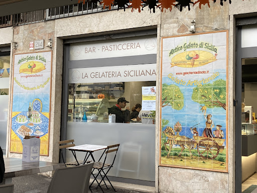 Il bar è molto bello, rinnovato recentemente fra l'altro. Appena si entra si viene subito accolti da un caloroso sorriso, che sia dei proprietari o dei ragazzi che vi lavorano. Professionali, gentili, simpatici e che trattano prodotti eccezionali, dal semplice caffè e cornetto, ai primi piatti. Offrono principalmente una vasta scelta sulla pasticceria: cornetti, torte, mignons, brioche, cannoli siciliani, il gelato (uno spettacolo). Ma anche su prodotti salati, dai tramezzini, panini, pizzette....ai prodotti più tipici, come arancini o cartocciate. Hanno anche una selezione di prodotti siciliani, come ad esempio marmellate e creme spalmabili dolci, ma anche sughi e salse per preparazioni salate, tra cui il fantastico pesto di pistacchi, e poi ancora prosecchi e altro. Il bar è provvisto di un bellissimo dehor esterno, dove è possibile venire a fare ad esempio degli ottimi aperitivi. I prezzi per la qualità che offrono sono più che onesti. Hanno anche delle pagine social su Facebook ed Instagram molto attive, dove è possibile vedere ciò che preparano quotidianamente. Un piccolo angolo di Sicilia che merita davvero tanto. Nell'insieme, cinque stelle più...