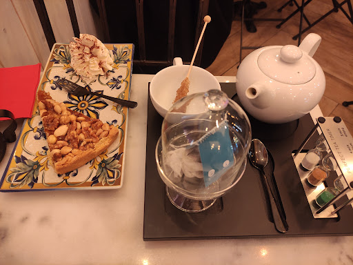 Siamo stati costretti a mangiare il gelato e la crêpes fuori sotto il cornicione del palazzo, panchina storta e piccola messa davanti al locale.