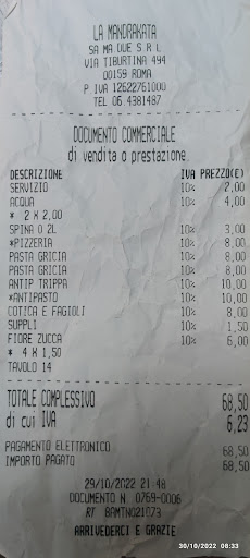 Read moreSpiacevole esperienza, il proprietario è stato maleducato e offensivo quando gli abbiamo detto che la pasta era mezza cruda, attesa più di 30 minuti dalle ultime pietanze già consumate, era immangiabile e l'abbiamo lasciata tutta, invece di scusarsi ci ha aggredito perché gli ho detto che sembrava avere 2 cotture diverse. Oltretutto si è infastidito perché gli abbiamo fatto notare che ci aveva fatto pagare un importo diverso da quello indicato nel menù della trippa ordinata. Tutto ciò avvenuto dopo aver già pagato il conto. Inoltre aveva erroneamente conteggiato una pizza e una bottiglia di acqua in meno, è tornato al nostro tavolo e ci ha chiesto la differenza di €10, mentre la pizza costava €7,5, già ci ha fatto pagare € 4 in più per la trippa, e le 2 bottiglie di acqua erano già state pagate. Quindi pure bugiardo. E non abbiamo cenato in un giardino ma in una veranda chiusa con una copertura in plastica, neanche sa cos'è un giardino. Non ci torneremo mai più, d'altronde è stata l'ultima frase che ci ha urlato mentre...