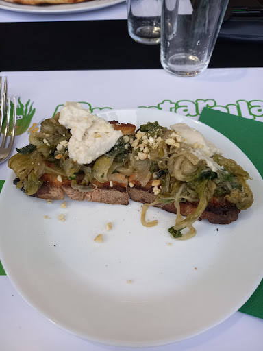Read moreLa Puntarella Pazza ha aperto da poco, locale 100% vegan che non ha nulla da invidiare a quelli più rinomati, anzi. Cucina tipica romana in chiave vegetale, è la seconda volta che ci vado e hanno già migliorato il menù. Purtroppo non ho fatto le foto al tris di montanarine, la "burrata" di anacardi insieme alla veg mortadella è ottima. Ogni "formaggio" a parte il Gondino, è di loro produzione. L'amatriciana servita già con una spolverata del suddetto è fantastica, la carbonara vegetale con la crema non fatta con la farina di ceci, ha ricevuto l'approvazione del mio ragazzo non vegano. Renderei solo le porzioni di pasta leggermente più abbondanti, ma vi assicuro che è un piccolo gioiellino in quel di Ostia. Vi verrebbe voglia di assaggiare qualsiasi piatto sul menù ed i dolci sono davvero ottimi! Se arrivate coi mezzi, dovete scendere a Castelfusano, la Puntarella è proprio a pochissimi passi a piedi fuori dalla stazione, zona in cui è facile trovare parcheggio. Questo è il tipo di cucina vegetale che dovrebbe diffondersi ovunque, fatta con passione e dedizione, si vede che Simona ci mette il cuore nella sua cucina. Prossimamente amplieranno gli orari d'apertura con pranzo ed aperitivo che proveremo di...