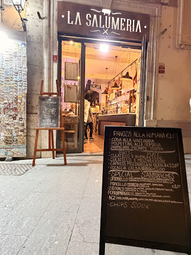 Read moreLa Salumeria isn't just a sandwich shop; it's a charismatic culinary experience that immediately became my favorite in Rome and the second-best I’ve found in all my Italian travels. Tucked away with a small, yet inviting and charming atmosphere, this spot perfectly blends a fresh, modern aesthetic with old-world charm, emphasized by the cured meats hanging on display. It’s the ideal locale for a casual date or catching up with friends over a glass of local wine and a delicious bite.