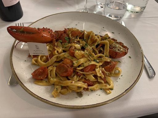 Read moreI will be chasing this dragon for the rest of my life. La Soffitta was around the corner from our AirBnB, and I had also done a lot of research to find that they 1) deeply cared about allergies and 2) could do incredible gluten free dishes. My husband and I both got dishes off the Chef's Menu and a bottle of wine. I got a GF lobster pasta and he ordered a lamb dish. While mine was extraordinary – handmade pasta, fresh seafood, a sauce to DIE FOR – his was only fine, so that was a bit unfortunately. However, the waiter was so kind and went out of his way to make sure both of our allergies were taken care of and even brought over the flour bag from the kitchen (!) so my husband could check the ingredients for what he is allergic to. I hope one day I get to go back and I hope they have SOMETHING resembling the lobster pasta. I will think about it the rest of my life. I also had a delicious dessert – a fruit pie type dessert with a crumbling crust.
