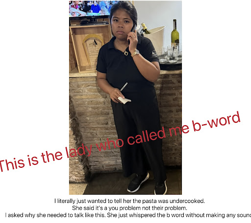 I asked, “Are you calling me a b?” and she completely ignored me, turned away to answer the phone, and avoided eye contact on purpose.