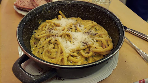 Read morePopular local trattoria, but they need more staff. The food was decent, but heavy on the salt. I ordered a carbonara with rigatoni instead of the standard spaghetti and told by the waiter it will take 20 minutes as rigatoni will take longer; which I didn't mind as I was planning on an appetizer. I started with seasonal vegetables with thin rustic bread and some bufala mozzarella. The veggies (eggplant & zucchini) were lightly grilled and drenched in an acidic and tangy pesto like marinade. It was tasty, but heavy and the thin crisp bread was a bit uninspired as was the tasty and creamy, but lonely mozzarella. The carbonara arrived but it was spaghetti instead of the rigatoni I ordered. The waiter was apologetic and offered to get me my rigatoni, but it would take another 20 minutes - thanks, but no thanks. The flavor of the carbonara was rich and creamy and not light on the black truffle oil. The pasta was al dente and chewy and continued to soak up the sauce as I continued to eat. The portion is generous and I could only finish half. The house white wine was flat and dry and acidic and I couldn't finish it. There was only 1 waiter and 1 busser for about 10 tables so I don't really blame the waiter for missing my single rigatoni order. He was friendly, made suggestions and checked on me several times throughout the meal. I would give 3.5 stars if Google would allow half...
