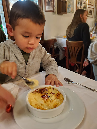 This place was amazing. The staff were super friendly and catered to my two year old as if he were their own. By the time I was done with my meal, my son referred to him as grandpa. Aside from the excellent customer service, the foods was amazing. I had the tripe and the wife had shrimp spaghetti. They were both delicious and worthy of five stars, which I never give. The focaccia bread was delicious and crunchy but soft and herbal all at once. It paired nicely with everything. We had the crease and tomato appetizer aaaand I have never tasted such wonderful basil in my life. We paired our dinner with a bottle of house red and I have no complaints about it. In the end we shared tiramisu and creme brulee. The tiramisu was just whatever, but maybe I was expecting too much. The creme brulee had a great flavor to it and crunch to the sugar. It wasn't overly sweet like some can be.