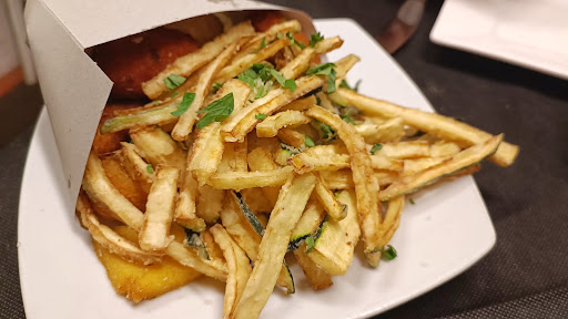 Pizza squisita, impasto buono, ben condita. Fritto ottimo, prosecco buono. Sul cibo nulla da dire, tutto buono e fatto bene. Metto 3 stelle perché il resto non è andato tanto bene. Ma sicuramente, visti gli altri commenti, sarà stato un caso il mio. Prenoto il locale intorno alle 20 per le 21, assicurandomi di avere un posto fuori. Alle 21 il mio posto riservato non c'era. È stato separato un tavolo per due persone da una coppia che stava mangiando comoda in un tavolo per quattro. La distanza tra i due tavoli era all'incirca di un bicchiere, ma fortunatamente la coppia ha deciso di andarsene per la troppa vicinanza. Così si alzano e si siededono altre due persone delle quali ora so residenza, cap, conto corrente ed albero genealogico. La cameriera non riusciva a servirci quindi ci passava i piatti. Lo spazio tra una persona ed un altra era poco, infatti la mia vicina, dietro di me, mi chiedeva scusa continuamente perché tirandosi indietro con la sedia toccava continuamente la mia. Insomma, il posto è carino, ben apparecchiato e tutto ma è casareccio. Cosa che non mi aspettavo all'interno di piazza anco marzio. Il sevizio quella sera è stato composto da due cameriere, una molto brava ed un'altra che quella sera non capiva bene le cose, forse per colpa mia. Ma ogni volta l'altra veniva a riprendere l'ordinazione. Tutto buono, ma rimane una pizzeria da asporto per i miei gusti. Prometto di tornare per alzare le stelle perché la potenzialità del posto, con quella cucina...