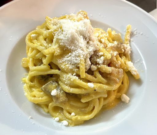 I had read some reviews about this restaurant and it seemed like a great place to go for our last night in Rome. It was quite underwhelming and disappointing. Very expensive for what you receive!! I asked for bread, but it never came. (To be honest, this seems like it should be part of an Italian meal.) We were charged six euros for a service fee, yet the service was terrible! We were also charged for tapwater! I understand there was a language barrier, and the staff only spoke Italian, but we weren’t even asked if we were happy with our dishes. My daughter and I both had pasta dishes and they were good however, the pasta was hard. If you’re looking for good pasta and a fun experience, do more research and find a better place to...