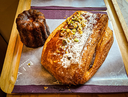 The Pastries: Feuillette Pistachio launches a flamboyant clash of textures where golden shards of pastry shatter and fall before a riotous surge of pistachio cream - a decadent, nut-fueled uprising that leaves your tongue drunk, dazed, and begging for more. Beneath its deeply caramelized, glassy-crisp armor, the Cannelé de Bordeaux conceals a molten heart, tender, custardy, and drunk on dark rum and vanilla - a sinful duet of textures and flavors that crashes over your senses and lingers like a forbidden kiss. The Tarte Citron stands as a fierce runner-up at the altar of Tartine Bakery’s holy lemon tart — the heavenly balanced masterpiece. Le Levain’s version plays in the same league, just a breath away from Tartine’s legendary smoothness and electric citrus fire.