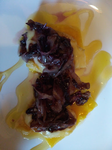 Un posto molto carino, l'atmosfera è molto gradevole, arredato con gusto anche se eccedeva di particolari, il locale è molto spazioso e i tavoli sono larghi gli uni dagli altri. Il pranzo è stato ottimo, ho ordinato un crostino di polenta con taleggio miele e radicchio, molto particolare come gusto, a mio avviso un po insipido e dolce ma gli accostamenti veramente buoni e particolari.