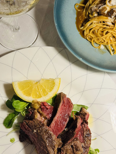 Read moreIf it wasn't for a small thing I'd leave 5/5 stars without a doubt but the small thing out me off. The food was great! I've had what I'd say is better food nearby, however this was still really good. We ordered the fillet, carbonara, mackerel fillet, and the chocolate cake. All 4 were incredible and the entrees alone were more than enough. It was just so good we wanted to try the desert too. What put me off is at the end when I got my bill they charged 10 Euros in fees theater there. Quite frankly idgaf if you're the best restaurant in the world, bake any fees into your prices. Don't add them by surprise at the end. Mackerel fillet - very good, it was set on a bed of frozen peppers woth a heavily sauce that was a perfect contrast between everything. Carbonara - very thick and very heavy. Full of flavor however arguably a little too much. Felt like the flavor was more overwhelming then well balanced. Fillet - excellent steak cut. The vegetables were cooked well. Sauce was really smooth. Just a very good dish. Chocolate cake - tasted like brownies. The whole dish was well balanced and every bite was filled...