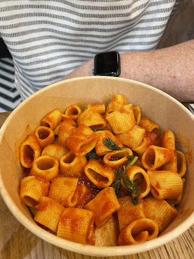 Read moreIt's hard to see where all those glowing reviews come from - they did manage to lure us in, but it was a disastrous experience. The good part is that it's attractive to see how the pasta is freshly made, and the results they sell do look appealing. The we ordered lasagna - which was served still cold. Clearly it gets microwaved in the back. We had it reheated (to the point that bits were burnt), and no apology was offered. I'm not even sure they use their own pasta in the making of the dishes - ours may well have been store-bought and then just warmed up. The place also smelled badly, and the toilets were super dirty. Worst part, and it has been mentioned in other reviews, is the huge environmental footprint of plastic cutlery and cardboard bowls - unbelievable. We won't be back, and can only encourage others also to stay...