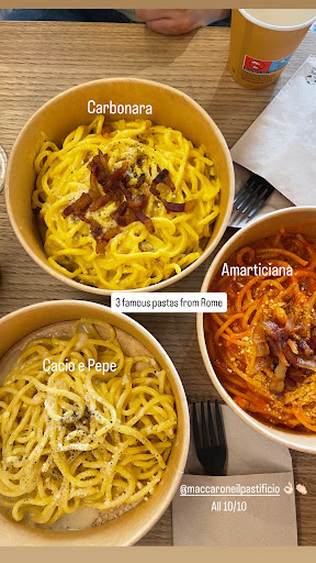 Read moreSi eres un amante de la pasta y te encuentras en Roma, Maccarone es un restaurante que no puedes dejar de visitar. Situado en el corazón de la ciudad, este establecimiento ofrece una experiencia culinaria genuina que celebra la tradición italiana con un toque moderno. Con un menú centrado en la pasta fresca y platos italianos clásicos, Maccarone se ha ganado rápidamente su reputación por su sabor excepcional y un ambiente acogedor.
