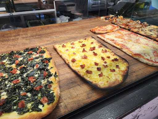 Simple, great tasting, Roma style pizzas at affordable prices. A little take out place with a few tables, across the street from the Ibis hotel. Fantastic find, highly recommend the spec, the spicy salami, and the lasagna. Based on the phone orders and foot traffic while we were there, the place is popular...