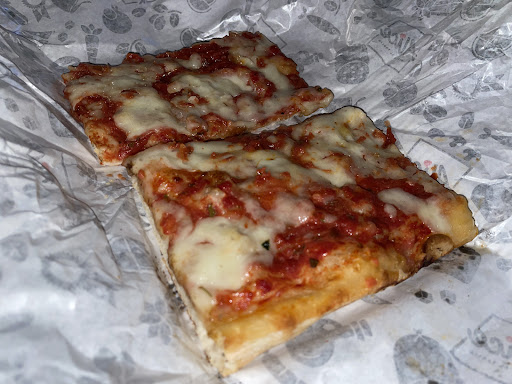 Alice is pretty standard for these quick eats. Pick your pizza from the several types on display, describe a size and your pizza is priced by weight. Heated up and ready to go in a small shop that is not designed for lingering. Perfectly okay with me.
