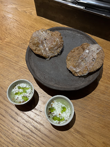 As for wine, the wine list is quite interesting. There's good natural French winemakers who I love on there (Nicolas Carmans, Bourde, etc), so put choices in hands of waiter. I asked for something like a pet nat / something ancestral to begin, was given a zero dosage classic method instead. Nice enough. After I asked if they had any chillable/chilled reds. Expecting something akin to a gamay, barbera, or perhaps some higher altitude Etna wine. I was offered a high altitude syrah, again reasonable but nothing worth snapping for Vivino.