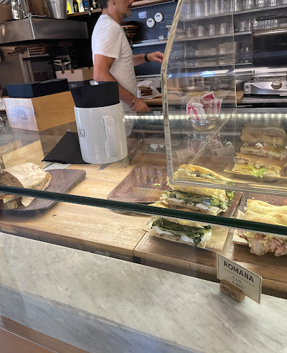 This trendy establishment offers a a variety of expresso drinks, freshly squeezed juices, sandwiches and pastries. I arrived just in time for lunch, the rush hour crowd filed in right after me. That's a great testimony to the quality of the food and drinks. The only objection is to what seemed to be a lack of process and apparent chaos as it was difficult to determine where to order, who to talk to , who was the cashier and who made the food etc..., it drove me impatient but they came through, sat us down and served us a good pizza romano, freshly juiced assortment of fruits. I will probably not go back as there is soo much to discover in Rome but I would encourage you to visit as they push...