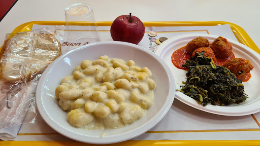 Mensa orizzontale. L'unica in cui si possa trovare una vera partecipazione di docenti e ricercatori alla vita universitaria anche attraverso il momento della pausa pranzo. Di fatto può capitare la fortuna di condividere un tavolo con un ricercatore Esa o un team aerospaziale internazionale. La qualità del cibo è ottima rapportata al prezzo. Gli ambienti sono puliti se non fosse per alcuni studenti che tendono a lasciare sporca la sala pranzo. In effetti sembrano essere sprovvisti di qualsiasi nozione di base afferente l'educazione tanto da non comprendere che tavoli e sedie sono 'di passaggio' pertanto dopo arriverà a sedersi qualcun altro. Il ragazzo in cassa è gentile, affabile e paziente. Un professionista. Le signore e la ragazza al banco gentili, veloci, attente. Unica eccezione un individuo dagli occhi azzurri, che 'spunta' in mezzo a loro, per la discutibile professionalità pronto com'è sempre a 'scompigliare le carte' creando caos ad esempio comportandosi da 'simpatico' bulletto con parte del personale al femminile, così con alcune di noi in fila o alternativamente impersonando la comare di paese. Un essere, senza dubbio alcuno, spregevole, che offende le donne non disponibili e spadroneggia credendo di essere ancora nella savana sicuro che ogni suo atteggiamento da primitivo maschio alfa sia, ancora oggi, da considerarsi legittimo. Forse lo sviluppo neurologico di tale soggetto si è fermato alla fase neonatale del bambino (e sono buona) o il livello di frustrazione è talmente elevato da dover trovare degli sfoghi necessari (lì dove il soggetto non sia capace di mediarli, di trasformarli o anche solo ritardare la risposta al bisogno) ma non è escluso che le due componenti siano presenti contemporaneamente nella persona. Quattro stelle sono dovute esclusivamente ai suoi inaccettabili...