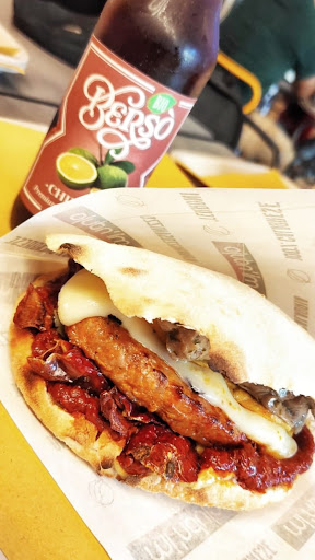 Read moreCibo ottimo ma... Ci ero già stato un paio di volte, i prodotti sono di qualità e nulla da ridire su ciò. Quello che mi ha colpito davvero negativamente oggi è un fatto a parer mio davvero grave. Entro, ordino, pago subito come è previsto e mi siedo ad aspettare. Nel frattempo una dipendente esce e inizia a distribuire ai passanti dei coupon per avere il panino gratis se si acquista una bibita, registrandosi sul loro sito. Dopo li consegna anche a noi, già seduti che aspettiamo: ovviamente accettiamo. Lei continua a distribuirli e alcuni di coloro che li ricevono si siedono e consumano. Insospettito, dopo aver pagato due menù a prezzo pieno, decido di approfittare della già citata promozione. Mi viene fatto effettivamente pagare solo il prezzo della bibita e mi viene fatto scegliere il panino omaggio. Mi chiedo dunque, perché a me il cassiere o la dipendente all'esterno non hanno consegnato prima di pagare il coupon e ad altri avventori sì? Mi sono sentito truffato alla grande, lì per lì ci ho pensato poco ma l'esperienza è stata pessima, specie perché era un posto che conoscevo già. Mi aspetto delle scuse come minimo. Non ci tornerò, lo sconsiglio vivamente se volete essere trattati dignitosamente. Ultimo ma non per importanza, parte del resto mi è stato dato con una moneta senza corso legale in Italia che però mi hanno prontamente cambiato.