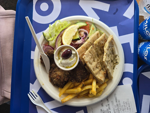 Ero partito con grandi aspettative, ma purtroppo sono uscito piuttosto deluso. Il locale ha uno stile fast food, con schermi per ordinare in autonomia e una cassa per chi preferisce un contatto diretto. L’ambiente è arredato con gusto, richiamando i colori e l’atmosfera tipici della Grecia. Buona la varietà di piatti proposti, anche se i prezzi risultano un po’ alti per la tipologia di cucina. Sono presenti alcuni tavoli all’interno e altri all’esterno.