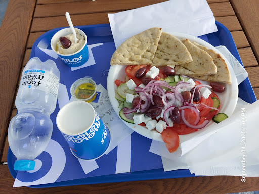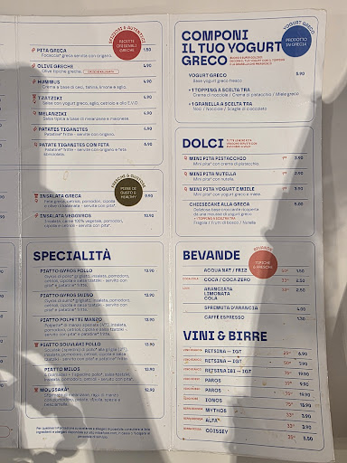 Read moreHo preso solo un’insalata greca e una birra. L’insalata greca non costava poco comunque te la danno accompagnata da una Pita E spesso anche in altri locali, l’insalate greche te le fanno pagare leggermente di più Di altri tipi di insalate. A ben vedere i pomodori erano non un po’ sottili e forse mancava qualche oliva e un po’ più di feta, insomma, non era molto abbondante, comunque è bastato chiedere al banco un’aggiunta e senza nessun problema mi hanno accontentato. Personale molto cortese. La birra aveva sicuramente un prezzo Buono, nonostante fosse da 33 cl. Si suggerisce nel locale di inserire dei cartelli con delle vedute magari pittoriche delle località più famose, anziché mettere molte repliche dei piatti disponibili del locale. Tutto sommato, un locale colorato, fresco, e con cose da mangiare piuttosto sane, anche se ho notato nel menu che inseriscono le patatine fritte in alcuni piatti, forse per seguire una tendenza presente,...
