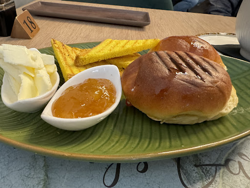 Read moreI ordered the “Italian breakfast set” for breakfast with friends. It came with what is shown in the pictures (cappuccino, some toast and finger foods) as well as a fruit bowl (some strawberries, blueberries, and apples, sliced and doused in a syrup). Overall, the meal itself was fairly mediocre with the exception of the cappuccino, which I greatly enjoyed. The toast was super thin and the fruit was overly sweet because of the syrup, which it didn’t need. Overall, this meal set cost €24, which felt fairly overpriced. I wouldn’t order it again.