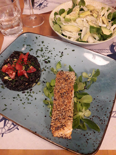 Read moreMolo 9/12 consigliatissimo e di qualità! Il locale si trova tra le vie storiche del Quartiere della Garbatella vecchia, a pochi passi dal famoso Bar dei Cesaroni. Aperto di recente la sua fama è già ben affermata! Il ristorantino si presenta esternamente con una bella terrazza, dove potrete mangiare durante le belle serate d'estate;entrati all'interno vi sembrerà di trovarvi in una località di mare. L'arredamento in stile marino e i toni freddi ben richiamano il nome dato all'attività. La sala ha pochi posti a sedere, per cui si consiglia di prenotare. Il menu, esclusivamente a base di pesce, offre una bella scelta tra antipasti, primi e secondi... tutti realizzati con ingredienti freschi e di alta qualità. Gli antipasti propongono cotti e crudi di pesce, tra questi consiglio la frittura di calamari e la tartare del giorno. I primi propongono tutti pasta fresca, fatta artigianalmente, i piatti sono ben calibrati sia nei condimenti che nelle porzioni. Mi ha stupito in particolare l'abbinamento proposto nei secondi, in particolare il salmone in crosta di sesamo, accompagnato da riso nero, pomodorini e avocado. Equilibrio perfetto tra proteine,carboidrati, grassi buoni e verdura! Bravi!! Che dire poi dei dolci... superlativi... la Siadas sarda è ottima! A carta dei vini è ricercata e ben accompagnata ai piatti di pesce... fatevi consigliare su quale calice o bottiglia di vino abbinare! Servizio veloce, i camerieri sono cordiali e simpatici, il proprietario molto professionale. Ho apprezzato molto la qualità della cucina, non banali gli impiattamenti. Finalmente un ristorante alternativo e gourmet nella tradizionale Garbatella. I prezzi sono in linea con la qualità, le portate si aggirano dai 14 ai 21€. Potete anche prenotare con The Fork avendo così lo sconto alla cassa. Se avete problemi di intolleranze fatelo presente, tra le pietanze del menù potrete comunque trovare delle alternative senza glutine e lattosio, pur non essendoci un apposita...