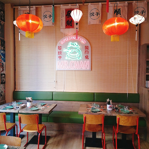 Read moreDalle ceneri di Toyama, storico quanto sfortunato cino-giappo all you can eat, è da poco apparso un locale davvero degno di attenzione. Mr. Chan è il nuovo ristorante cinese destinato a diventare una delle perle nel panorama gastronomico del quartiere Nomentano. Perfettamente in linea con le ultime tendenze, propone i più amati piatti del Dim Sum: dumplings, baozi, "mo" e altre delizie sono ciò che troveremo in quella che essenzialmente è una ravioleria, ultima frontiera del comfort food e dello street food. A questo proposito, infatti, il ristorante permette tutte le modalità di fruizione come take away, delivery e consumazione sul posto. Le ordinazioni, come si usa da qualche tempo nei fast food o nelle piadinerie più evolute, si eseguono tramite un grande terminale touch screen per poi pagare in cassa e, se si vuole, ritirare il segnaposto e accomodarsi al tavolo, dove si verrà serviti. Il locale, piccolo capolavoro di estetica pop, mostra arredi e decori pop davvero spassosi e sembra un pezzetto di Chinatown strappato da un film o un videogioco cyberpunk. Effetto, questo, ancora più accentuato se ci si reca di sera, grazie all'illuminazione di grande effetto, le lanterne cinesi e i coloratissimi arredi al neon. Guardando nel dettaglio il menu, non gigantesco ma sufficientemente vario, troviamo innanzitutto ravioli di tutti i tipi: insieme ai classici con maiale, manzo o verdure ci sono quelli con pollo e curry, pesce, calamari e addirittura anatra e coda alla vaccinara! Immancabili gli appetizer come springrolls, disponibili anche ripieni di pesce o carne. Troviamo poi gli immancabili bao, morbidi panini ripieni di carne e verdure che da soli valgono la visita. Presenti anche primi piatti come spaghetti, ramen (ma non era giapponese?) e riso in varie versioni. Simpatica l'offerta dei dolci, con l'onnipresente mochi e i bao ripieni di creme. Curata la lista delle bevande, con analcolici, birra cinese e vini di buon livello. Nella mia visita, ho gustato con piacere degli Xiao Mai di gamberi e maiale, un piatto di fumanti ravioli misti e degli spaghetti di riso dal curioso retrogusto dolce e molto singolare. Ma chi è Mr. Chan? Forse il titolare? No, basta leggere un pannello e guardare il logo del negozio per capire che è nientemeno un rospo vissuto nelle foreste cinesi, grande esperto di segreti di cucina tramandati nei millenni e pronto ad invadere Piazza Bologna con i suoi piatti irresistibili. Prezzi abbordabili e adeguati alla qualità, servizio gentile e attento. Super...
