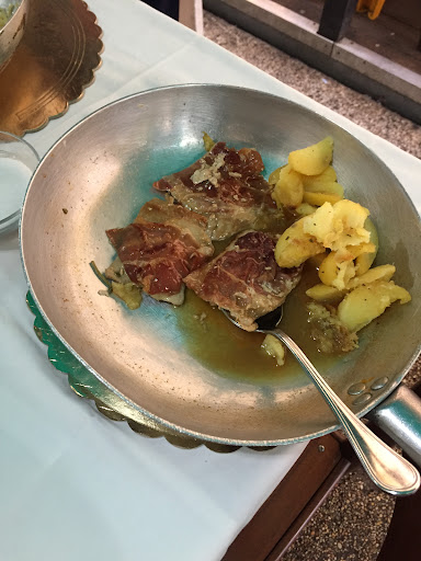 When I initially tried to order dessert along with the main courses, the waiter vaguely dismissed the request, saying something along the lines of "you'll order that later," and didn’t actually take the order. Along with the pasta, they brought out a small plate of roasted potatoes, meat, and vegetables as a "compliment from the restaurant" — served at the same time as the pasta.