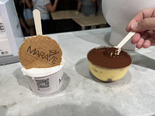 I loved my gelato and tried my wife's tiramisu which was delicious as well. I recommend Marave's whenever you can find...