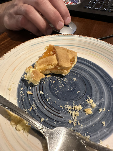 The pastry shop is small, so don't expect to sit there. There IS one bench right outside the door, but both times we visited, there were people waiting. The person who served us the second time was very friendly and joyful.