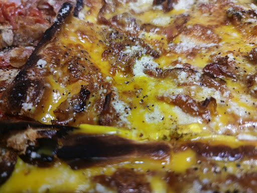 Nel dettaglio: mentre stavo aspettando le pizze tonde da asporto, ho preso un bel pezzo di carbonara al taglio e che vi devo dire, è stata buonissima, la crema (il pastello) era buonissimo e soprattutto non era una mezza frittata come spesso accade quando si prende un pezzo di pizza alla carbonara, questo fa capire l'attenzione e il rispetto degli ingredienti nella cottura. L'impasto era leggerissimo, proprio come ci si aspetta da una buona pizza in teglia romana, ben alveolato con la base croccante il giusto.